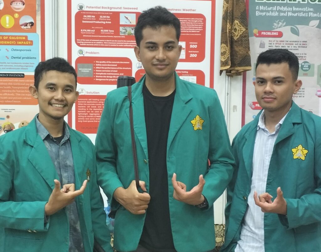Tim USK ini mengusung judul “Utilization of Bacillus Subtilis from Seaweed Waste Admixture for Making Self Healing Concrete”. Konsep bioteknologi, yang terinspirasi dari kemampuan intrinsik mikroorganisme untuk menghasilkan endapan kalsium karbonat, telah diadopsi untuk membuat beton auto-healing baru.