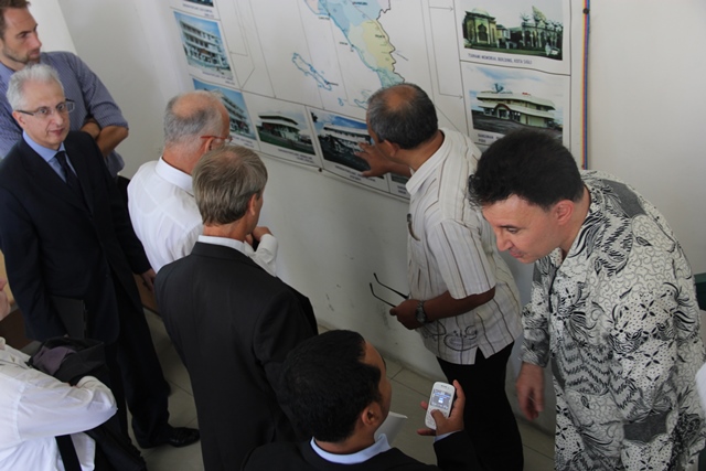 Duta Besar (dubes) Uni Eropa, Olof Skoog, beserta perwakilan negara Uni Eropa lainnya melakukan kunjungan singkat ke gedung Tsunami and Disaster Mitigation Research Center (TDMRC) Unsyiah di kawasan Ulee Lheue.