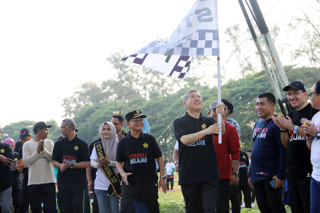 Rektor dalam sambutannya, menyampaikan terima kasih atas dukungan semua pihak yang terlibat demi menyukseskan jalan santai ini. Menurut Rektor, kegiatan ini diharapkan mampu menumbuhkan semangat kolaborasi dari semua Satker Kemdikbudristek untuk menyukseskan program Merdeka Belajar Kampus Merdeka.