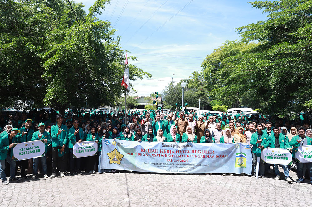 Universitas Syiah Kuala (USK) melepas sebanyak 1864 mahasiswa untuk mengikuti Kuliah Kerja Nyata (KKN) di Kabupaten Aceh Besar. Pelepasan tersebut berlangsung di depan Kantor Pusat Administrasi USK, Senin, 8 Juli 2024.
