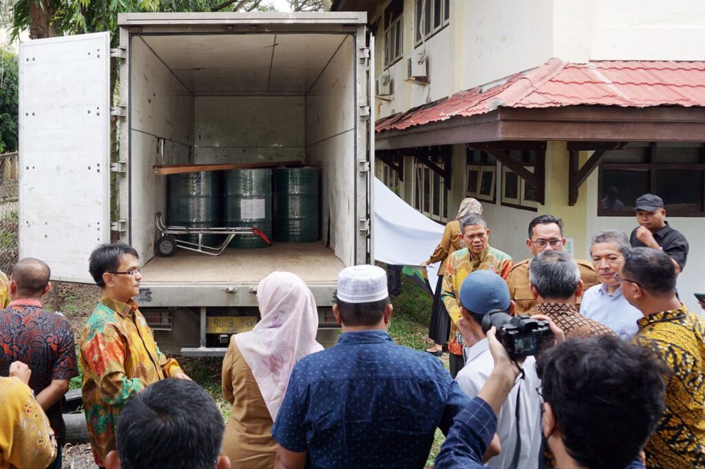 Ketua Atsiri Universitas Syiah Kuala melalui Atsiri Research Center (ARC) kembali mengekspor minyak nilam ke Perancis dengan nilai ekonomis Rp 2,5 milyar. Pelepasan komoditi ekspor tersebut dilakukan oleh Rektor USK Prof. Dr. Ir. Marwan di Kantor ARC USK. (Banda Aceh, 5 Desember 2022).