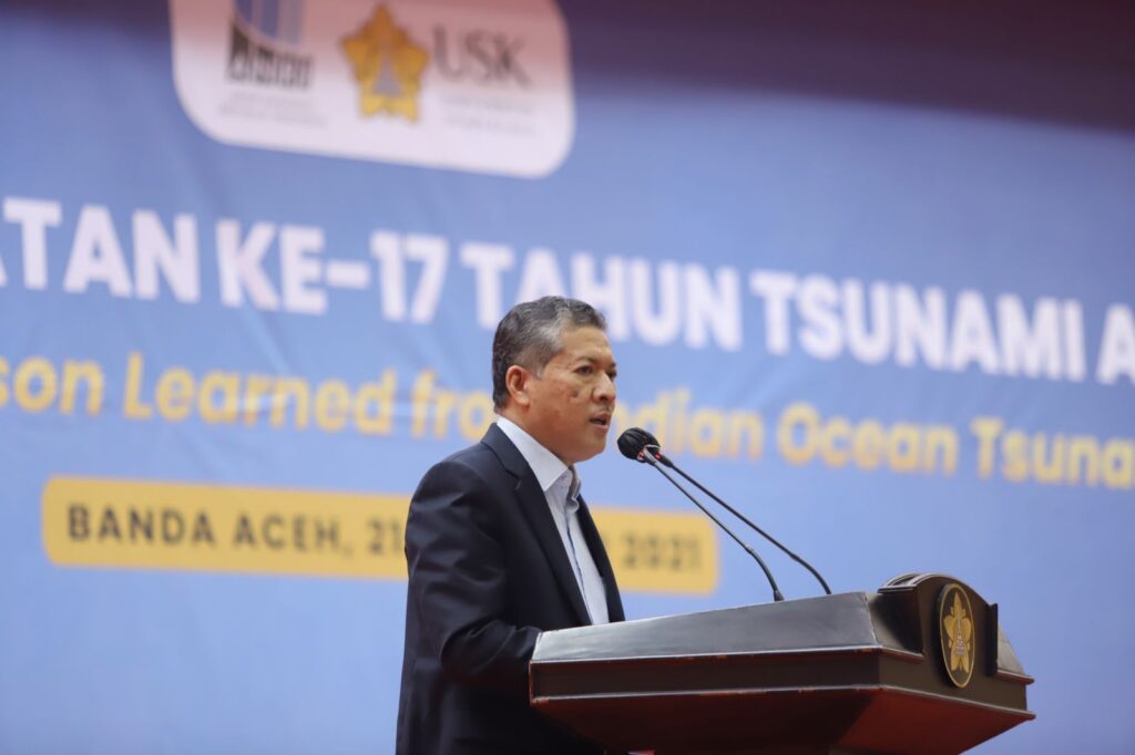 Dalam kegiatan ini, Menteri Pariwisata dan Ekonomi Kreatif Sandiaga Uno turut memberikan sambutannya secara daring dari Bali. Sandiaga mengatakan, peristiwa gempa dan tsunami Aceh telah membuka mata kita tentang pentingnya teknologi sistem peringatan dini.
