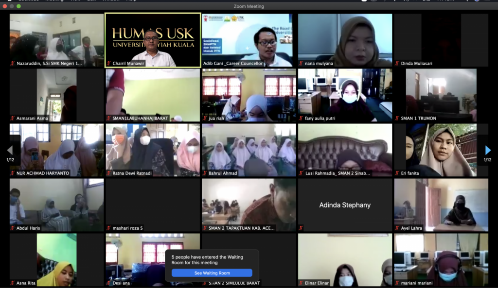 Universitas Syiah Kuala (USK) melakukan sosialisasi Seleksi Nasional Masuk Perguruan Tinggi Negeri (SNMPTN) dan seleksi masuk PTN yang diperuntukkan bagi siswa siswi SMA/SMK/MA, para pendidik, dan orang tua. Sosialisasi ini dilakukan secara daring, via zoom meeting, Jumat (19/2).