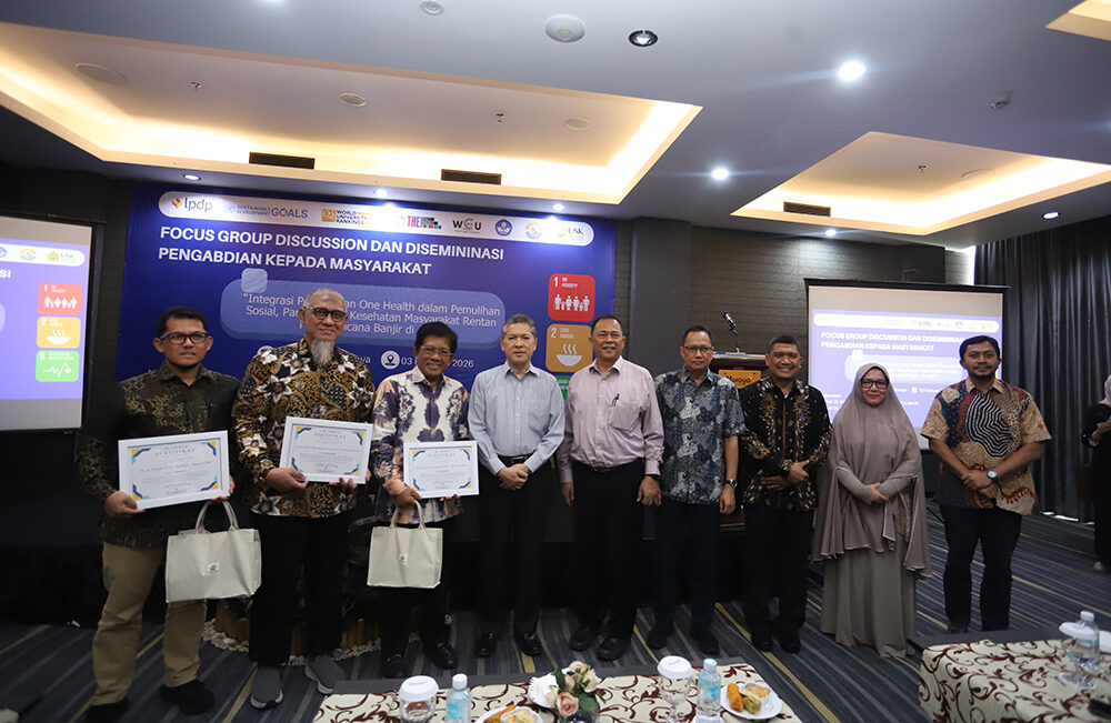 Universitas Syiah Kuala (USK) berupaya mengintegrasikan pendekatan One Health dalam pemulihan sosial, pangan, dan kesehatan masyarakat rentan pascabencana banjir di Aceh, melalui kegiatan Focus Group Discussion (FGD) dan Diseminasi Pengabdian kepada Masyarakat. Kegiatan ini dibuka oleh Rektor USK Prof. Dr. Ir. Marwan di Hotel Kyriad Muraya. (Banda Aceh, 3 Februari 2026).