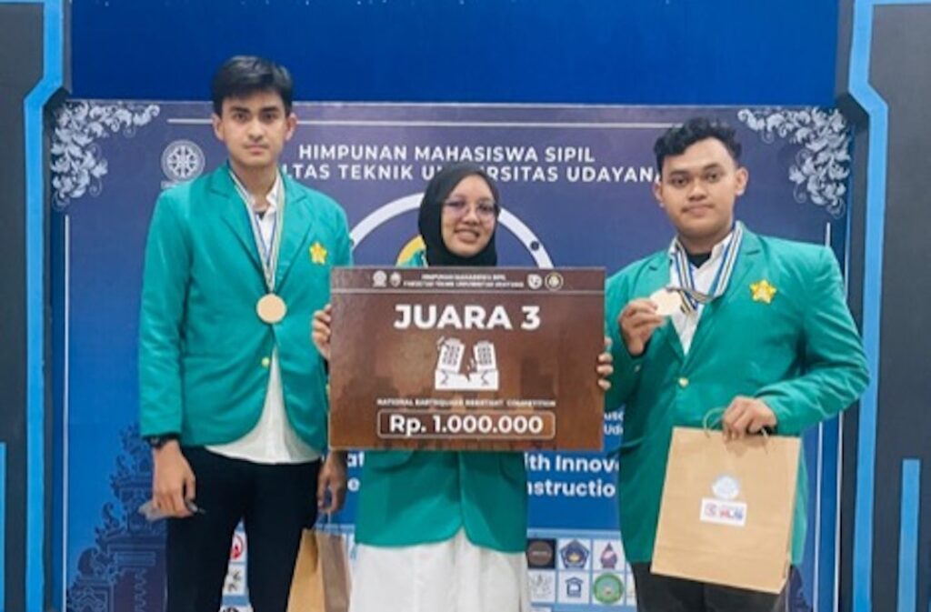 Mahasiswa Universitas Syiah Kuala (USK) kembali mengukir prestasi membanggakan di tingkat nasional. Mahasiswa Program Studi Teknik Sipil USK yang tergabung dalam tim dengan nama Tim Koetaradja Moeda, meraih juara tiga pada kompetisi rancang bangun (KRB) yang diadakan oleh Himpunan Mahasiswa Sipil (HMS) Universitas Udayana, Denpasar, Bali.