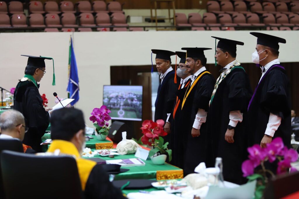 Universitas Syiah Kuala (USK) kembali mengukuhkan lima profesor baru dalam Sidang Senat Terbuka yang dipimpin oleh Ketua Senat, Prof.  Dr. Ir.  Abubakar, MS. Pengukuhan ini dilaksanakan secara daring dan luring dari Gedung AAC Dayan Dawood. (Banda Aceh, 2 Juni 2022).