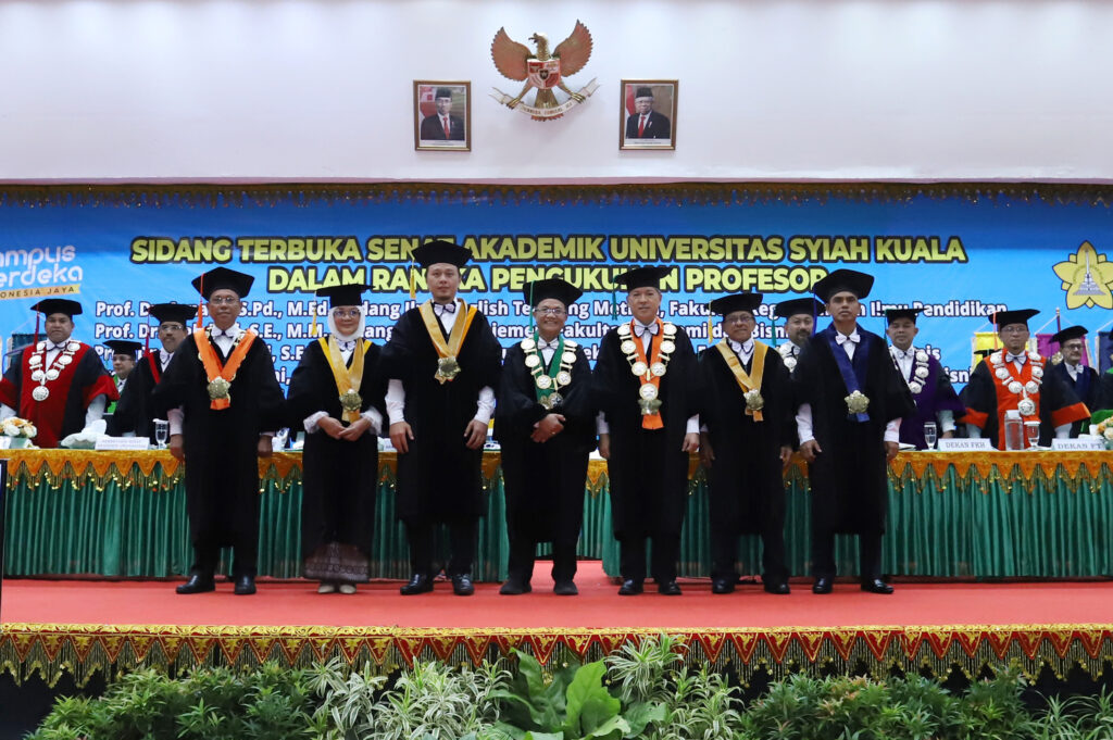 Universitas Syiah Kuala melalui Sidang Terbuka Senat Akademik Universitas mengukuhkan lima profesor baru di Gedung AAC Dayan Dawood. (Banda Aceh, 31 Mei 2023).Mereka adalah Prof. Dr. Asnawi, S.Pd., M.Ed, Prof. Dr. Mahdani Ibrahim, S.E., M.M, Prof. Dr. Heru Fahlevi, S.E., M.Sc, Prof. Mirna Indriani, SE, M. Si, AK, CA dan Prof. Dr. Ir. Taufiq S., M.Eng.