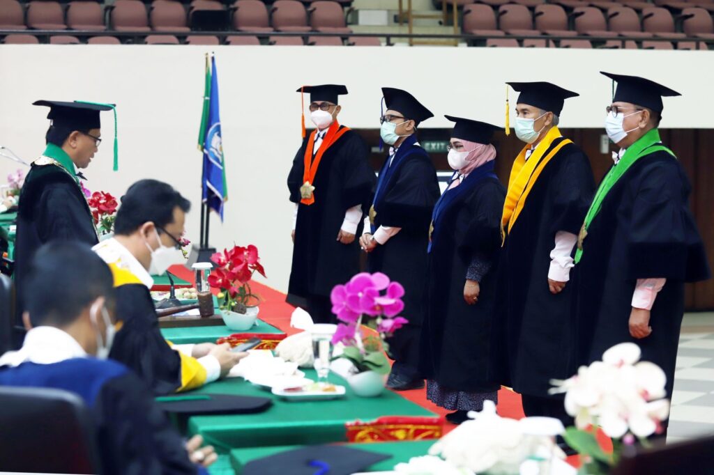 Universitas Syiah Kuala (USK) kembali mengukuhkan lima profesor baru dalam Sidang Senat Terbuka yang dipimpin oleh Ketua Senat, Prof. Dr. Ir. Abubakar, MS. Pengukuhan ini dilaksanakan secara daring dan luring dari Gedung AAC Dayan Dawood. (Banda Aceh, 12 November 2021).