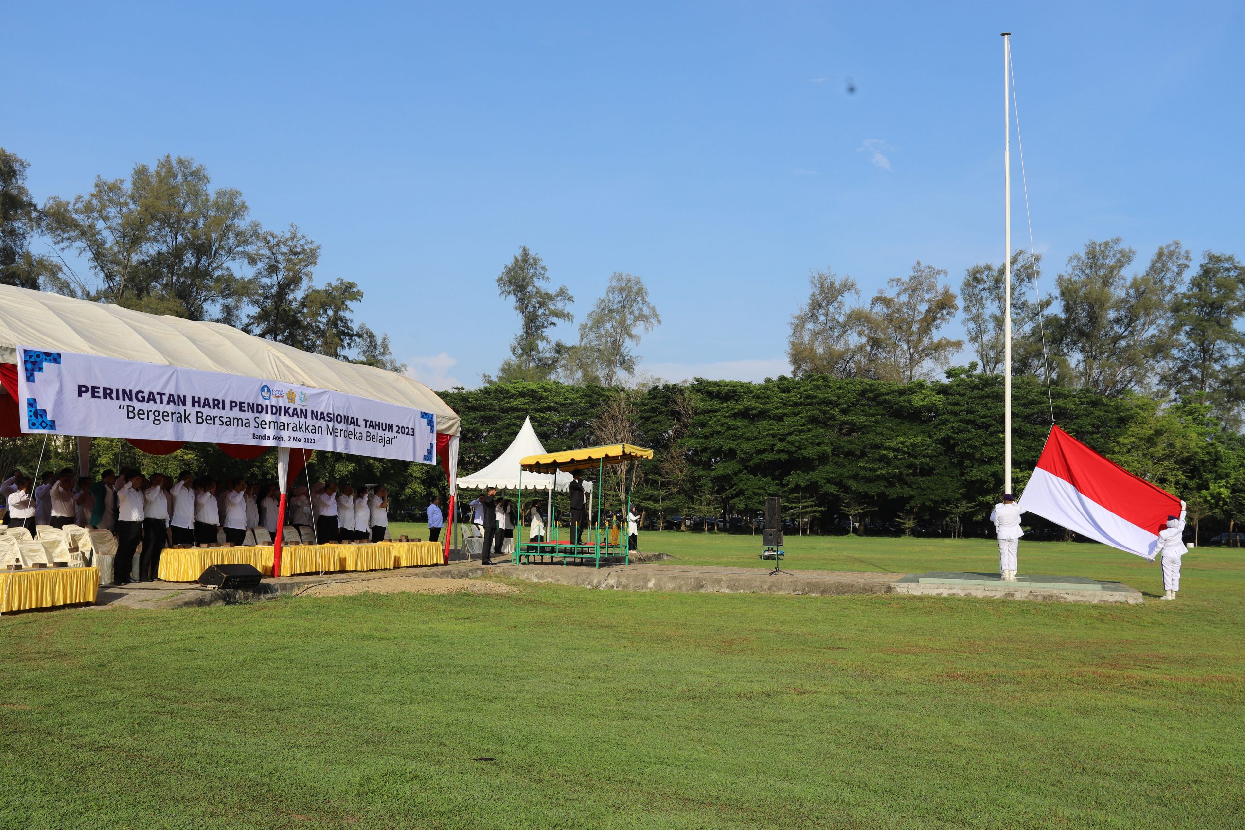 Universitas Syiah Kuala (USK) memperingati Hari Pendidikan Nasional (Hardiknas) tahun 2023 dengan melaksanakan upacara bersama. Wakill Rektor Bidang Akademik USK, Prof. Dr. Ir. Agussabti, M.Si bertindak sebagai pembina upacara, yang berlangsung di Lapangan Tugu Darussalam, Banda Aceh, Selasa, 2 Mei 2023.