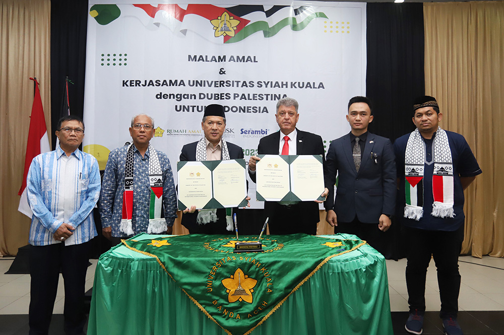 Rumah Amal Universitas Syiah Kuala menyerahkan donasi sebesar Rp. 108.242.000 juta serta program beasiswa untuk Palestina langsung kepada Duta Besar Palestina untuk Indonesia Dr. Zuhair S.M Al Shun.