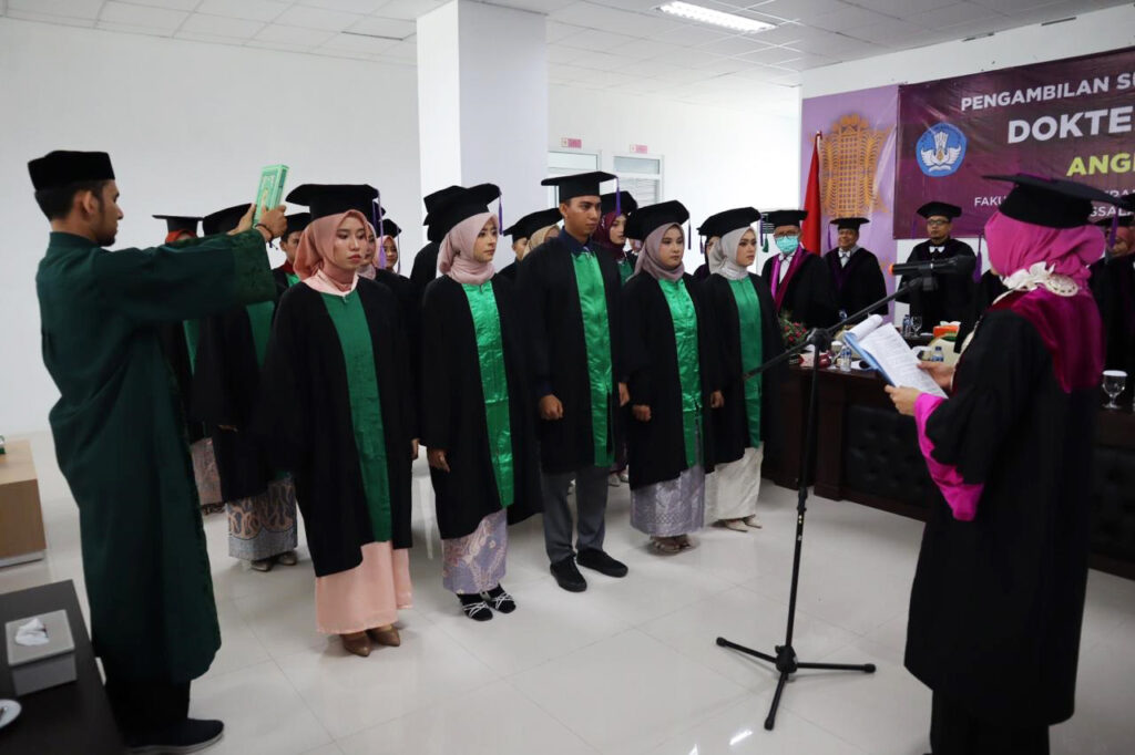Fakultas Kedokteran Gigi Universitas Syiah Kuala (FKG USK) meluluskan 15 Dokter Gigi baru. Pengambilan sumpah dan pelantikan diambil oleh Dekan FKG USK, Dr. drg. Cut Soraya, M.Pd., Sp.KG di Gedung Aula fakultas setempat, Senin 19 Februari 2024.