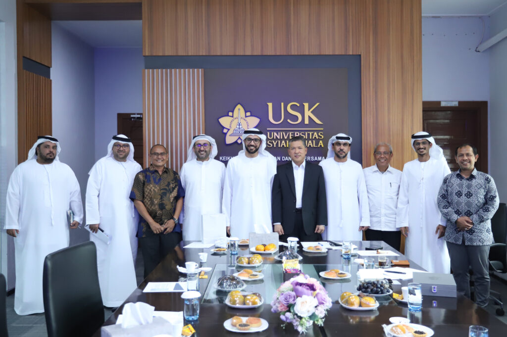 Kehadiran rombongan ini dipimpin oleh Chancellor MBZ University for Humanities Dr. Khalifa Mubarak Aldhaheri. Lalu dari pihak USK, turut hadir Wakil Rektor Bidang Perencanaan, Kemitraan dan Binis Prof. Dr. Ir. Taufiq Saidi, M.Eng serta Kepala Kantor Urusan Internasional USK Dr. Muzailin, S.Si, M.Sc