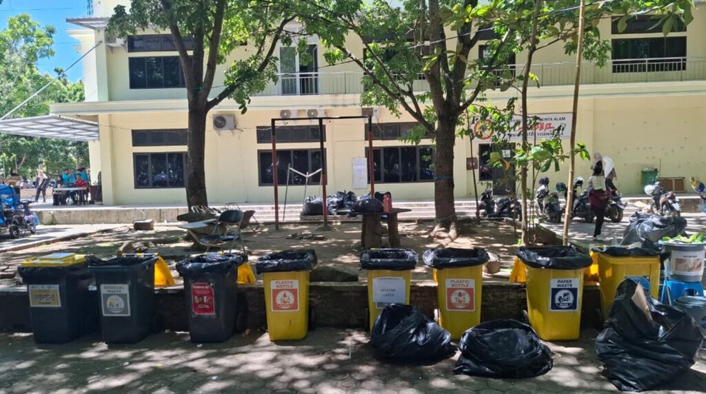 Selain itu, USK telah menerapkan sistem pemilahan sampah yang terorganisir dengan tempat sampah yang tersebar merata di seluruh area kampus. Setiap titik pengumpulan telah dipisahkan berdasarkan jenis limbah — organik, anorganik, dan residu — untuk mendukung proses daur ulang dan pengolahan lanjutan yang lebih efisien.