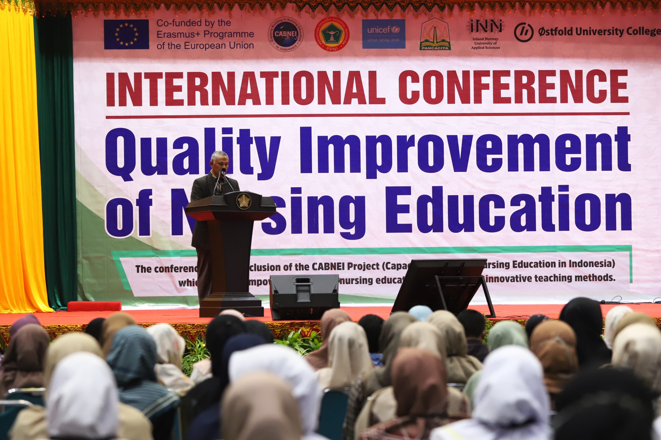Konferensi tersebut bertajuk Quality Improvement of Nursing Education. Wakil Rektor USK bidang Kemahasiswaan dan Kewirausahaan, Prof. Dr. Mustanir, M.Sc dalam sambutannya menyampaikan apresiasi sekaligus kehormatan, USK bisa menjadi tuan rumah dalam rangkaian seminar internasional Capacity Building in Nursing Education in Indonesia (CABNEI) yang didanai oleh Program Erasmus+ Uni Eropa (UE).