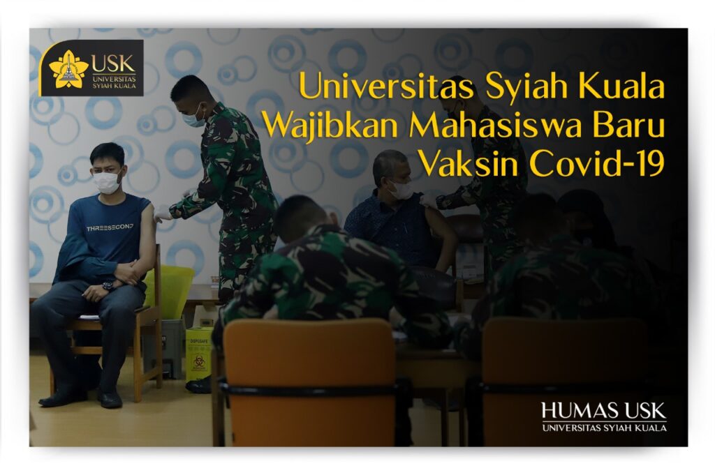 Universitas Syiah Kuala mewajibkan seluruh mahasiswa baru dari semua jalur masuk perguruan tinggi yaitu SNMPTN, SBMPTN dan SMM PTN Barat tahun akademik 2021/2022 untuk vaksin Covid-19. Keputusan ini berdasaran Surat Edaran Rektor No 2101/UN 11/WA.00.00/2021 tentang kalender akademik. (Banda Aceh, 5 Juli 2021).