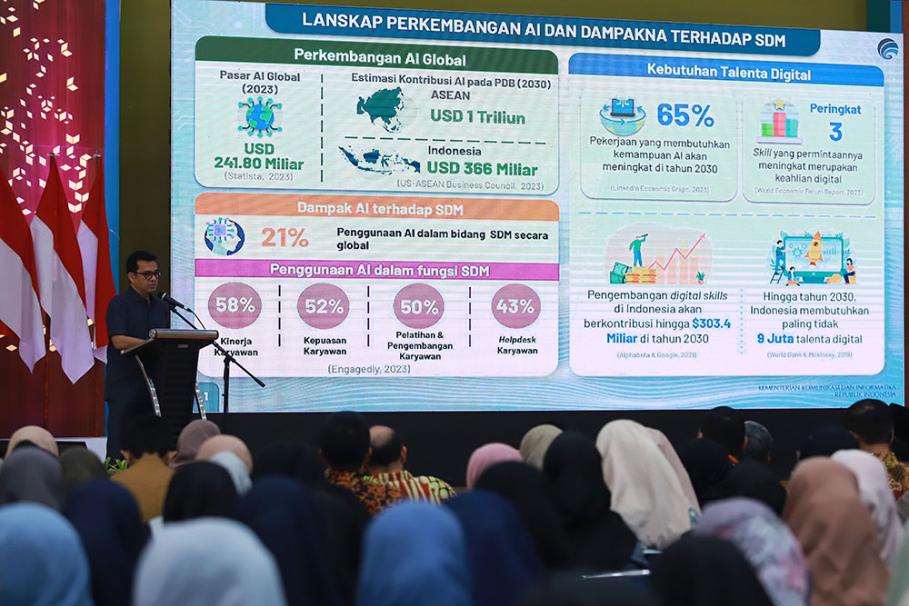 Untuk itu, dirinya menyampaikan, Kominfo memiliki sejumlah program pengembangan digital, meliputi: advanced digital skill, intermediate skill dan basic digital skill-digital literacy. Lebih jauh, ia menerangkan bahwa AI telah menjadi bagian dari ekonomi masa depan.